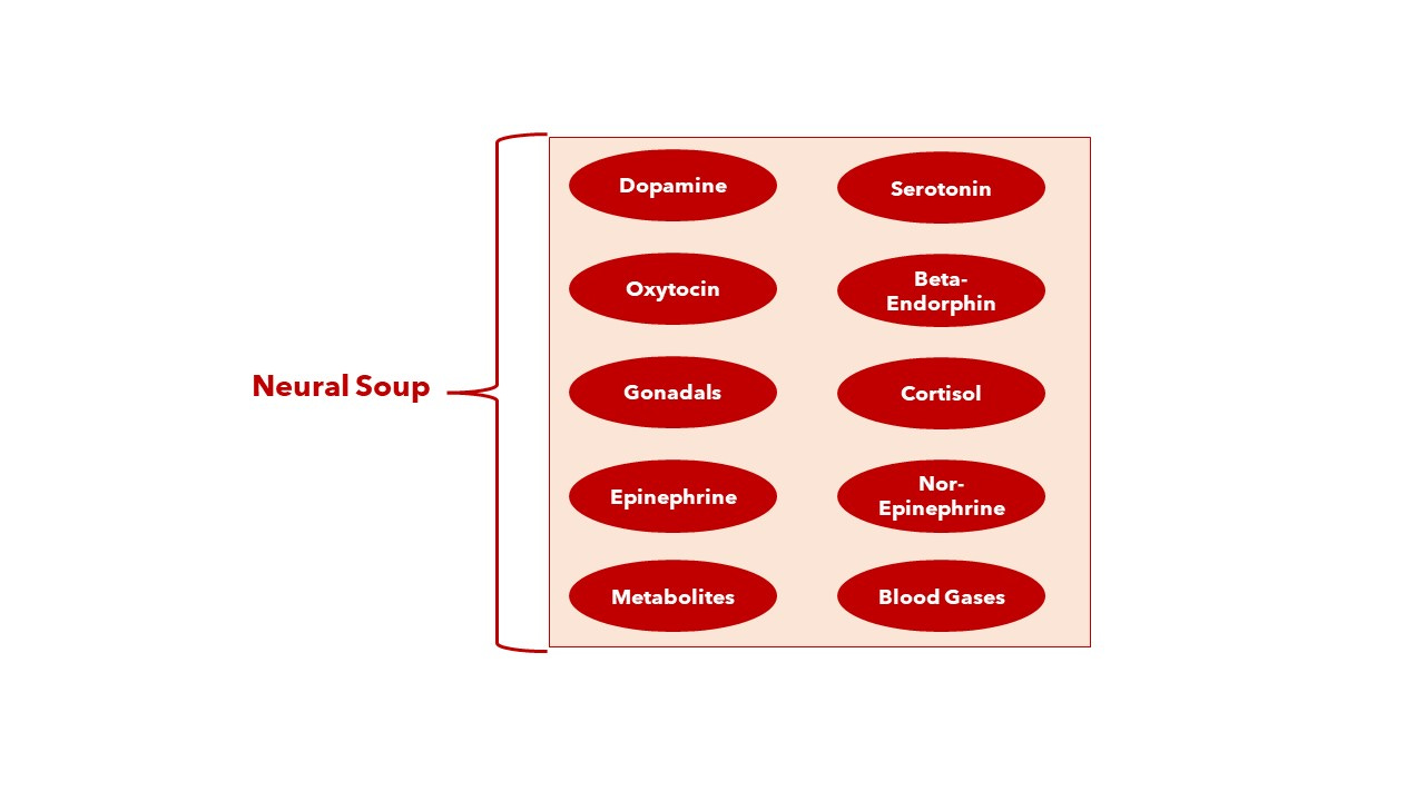 The deviation from creative homeostasis changes levels of a yet to be discovered change in whole-body chemistry. A key hypothesis is the existence of Hormone C (HC), a creativity hormone. It is not yet known if HC exists as a single molecule or as a mixture of numerous known hormones and other molecules forming a Neural Soup (Figure 3). The release of HC triggers an urge, or motivation, to create.
